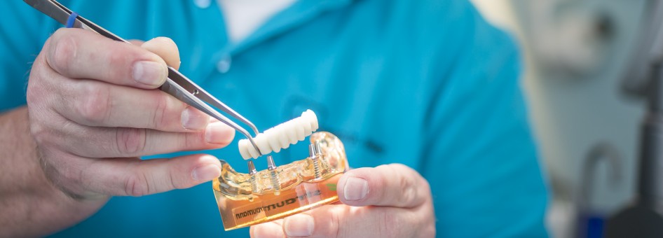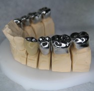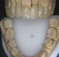 unter Zuhilfenahme von Titanstiften und Kunststofffüllungen zum Aufbau der Kronenstümpfe